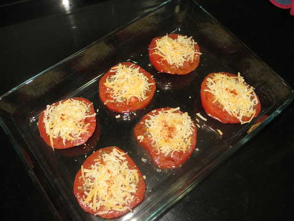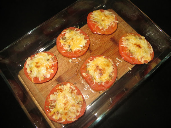 Metéis la bandeja con los tomates al horno durante 15 minutos a 200º con calor arriba y abajo y ya tenéis esta deliciosa guarnición.