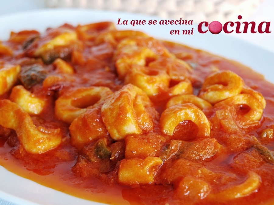 A continuación vamos a preparar un plato que lleva el tomate como protagonista de su salsa, lo encontramos en el blog de La que se avecina en mi cocina tenemos estas Anillas de calamar con tomate que con su toque picante nos sirven para ir haciendo "boca", de aperitivo, o de primer plato.