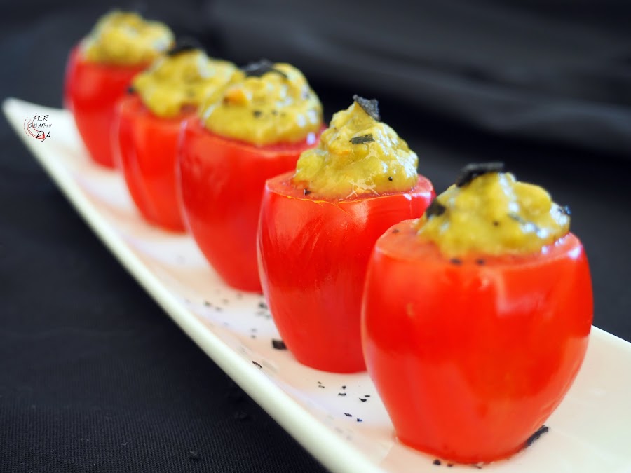 Para rellenar los tomates hay dos alternativas: ayudarnos de una manga pastelera o bien utilizar una cucharilla pequeña y un poco de paciencia.