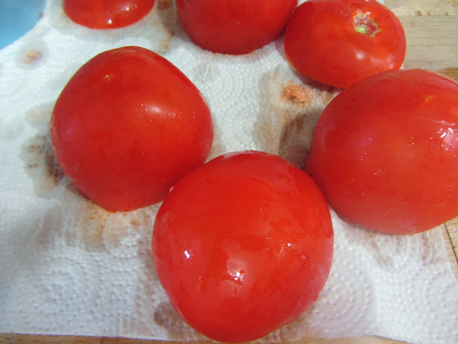 En primer lugar, vaciaremos los tomates. Los salamos por dentro, y los ponemos a escurrir sobre papel de cocina.