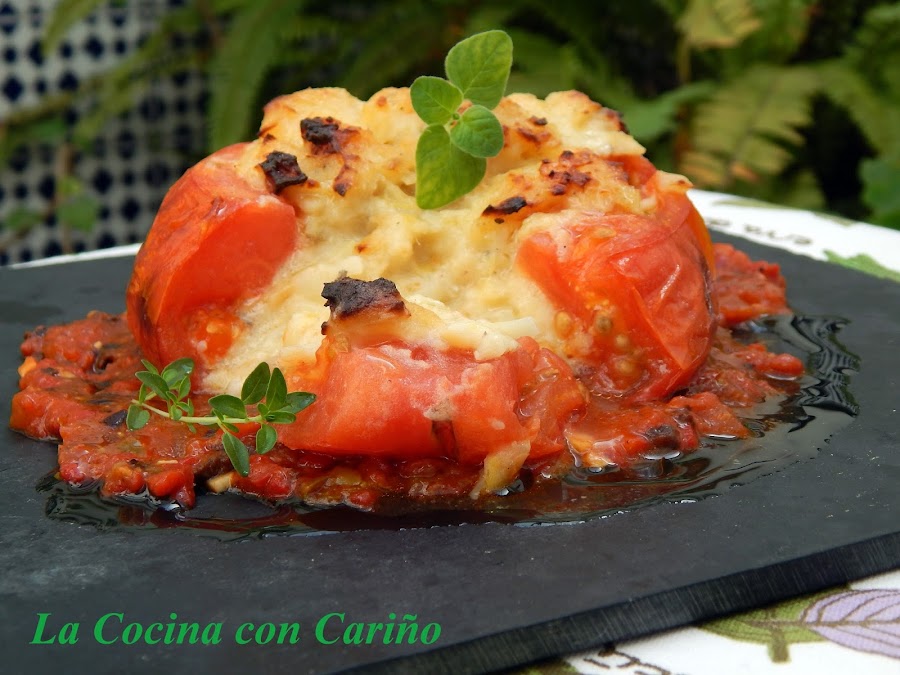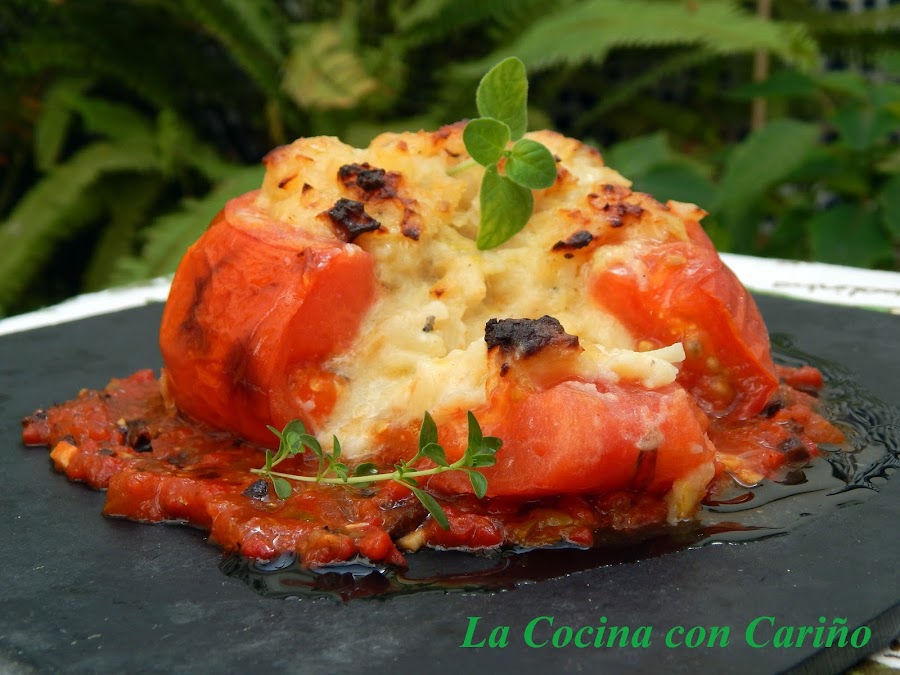 Que bendición los tomates cuando están ricos y en su época. Crudos, asados, a la plancha, en salsas, rellenos, UFF. No me canso de comerlos, pero hoy tocan rellenos. En realidad es un plato que he ido desarrollando con los años, ya que en casa, mi santa madre, no era dada a realizar este plato, pero bueno, habrá que aportar algo nuevo a la cocina tradicional de cada familia.