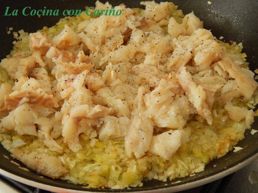 350 g. de bacalao salado, sirve el desmigado