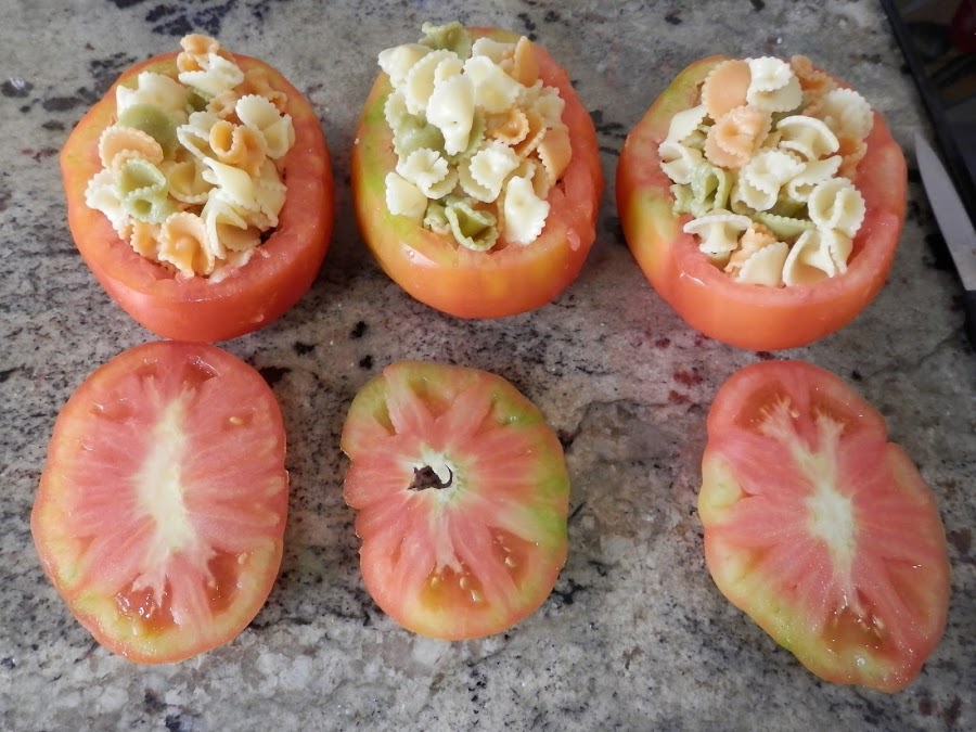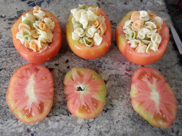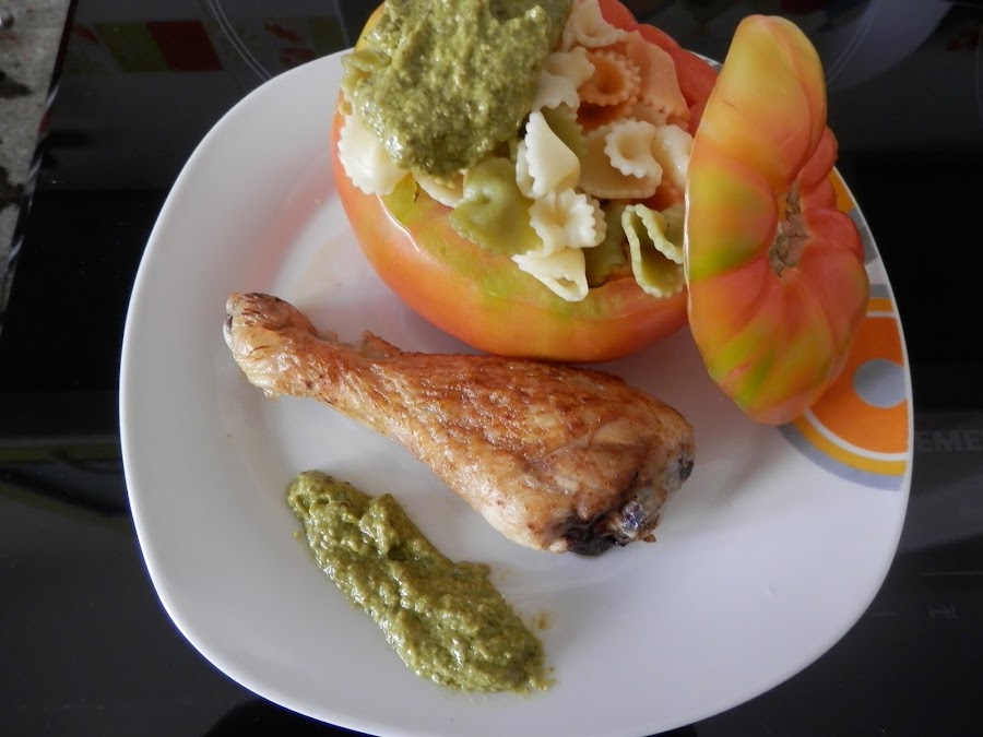 Hoy en el blog, tomates rellenos de pasta al pesto.