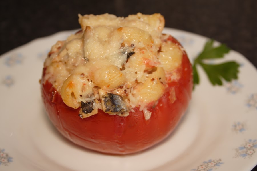 Cuando estén rellenos, les ponemos por encima el queso rallado, a vuestro gusto y los metemos de nuevo en el horno (misma temperatura y posición) durante 5 minutos o hasta que el queso se dore.