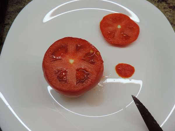 Le quitamos un poco en la parte de abajo del tomate, para que no se no mueva.