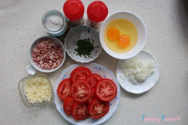 No se necesitan muchos ingredientes para preparar estos aros de tomate rellenos de tortilla. Yo os dejo una opción pero podéis cambiar los ingredientes a vuestro gusto.