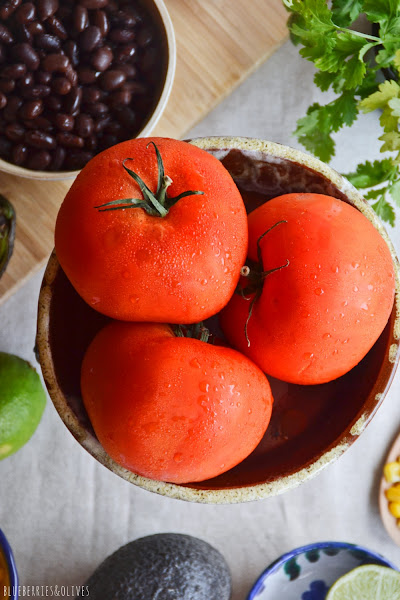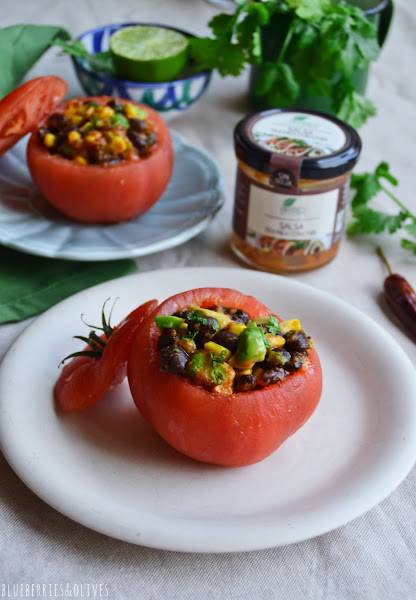 Me parecía divertido y original usar algo de temporada como son los tomates y rellenarlos con algún tipo de ensalada diferente, llevaba tiempo dando vueltas a donde usar la salsa tex mex de Herbes de la Conca así que pensé pues una ensalada tex mex con ingredientes mejicanos como los frijoles o alubia negra, aguacate, maíz, cilantro, lima...