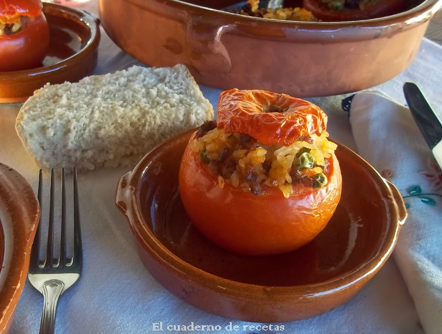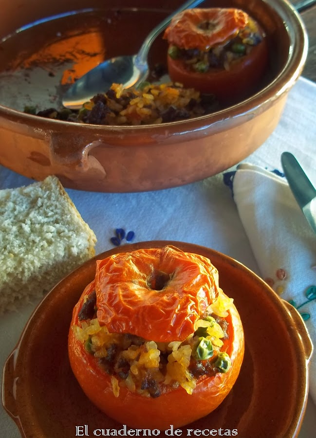 Años hace que no comía tomates rellenos, pasaron de ser un plato habitual en casa, pero siempre rellenos en frío: ensaladilla rusa, atún con mayonesa, salpicón de gambas....a caer en el mayor de los olvidos.