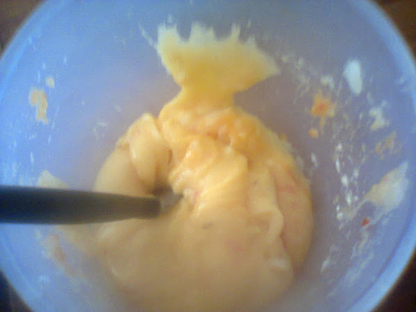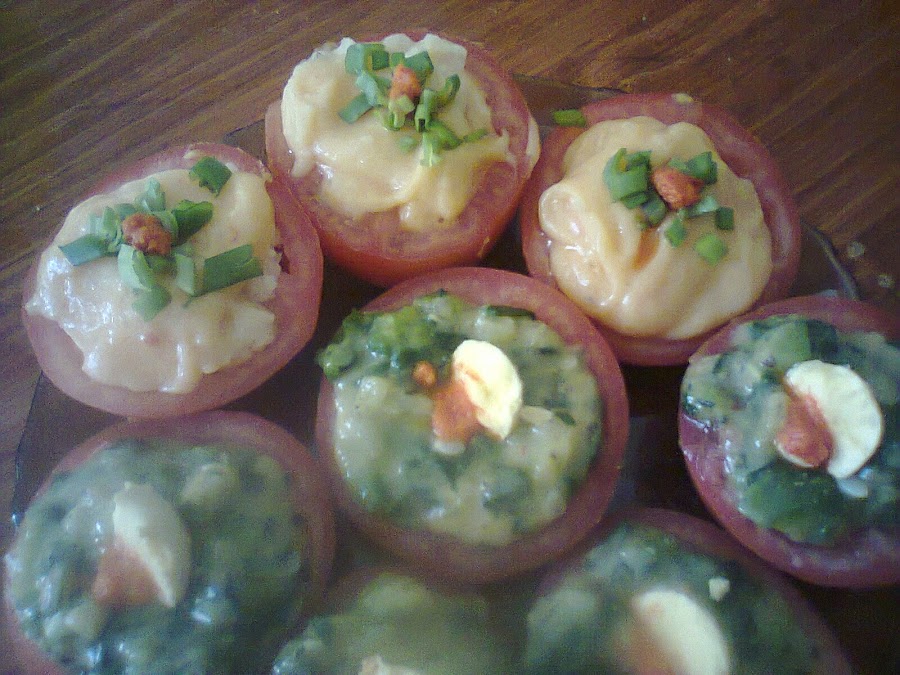 hago un puré, agrego aceite de maíz y 2 cucharaditas de salsa de morrón rojo, rellené 3 tomates solo con este puré.....