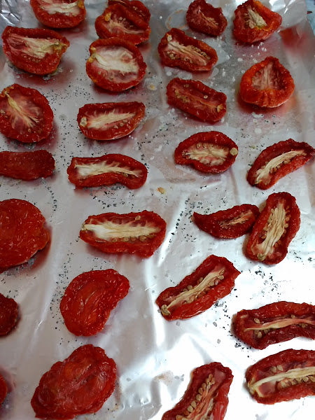 Cuando ya están secos ya los tienes listos para guardar. Yo los meto en aceite con una ramita de romero y tomillo y me sirven para ensaladas, guisos, etc. También para hacer esta pasta.