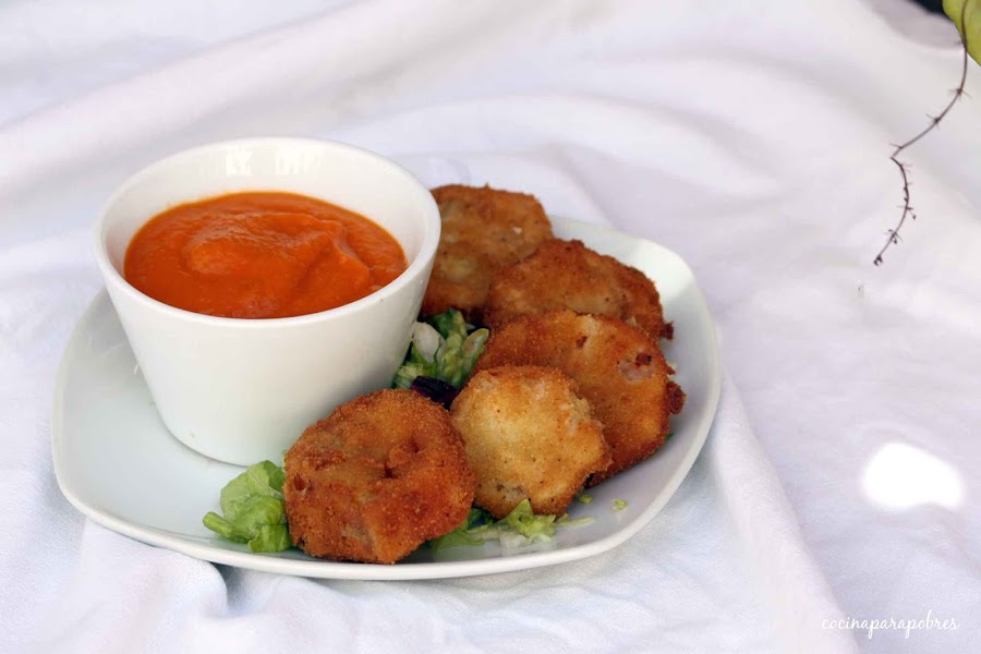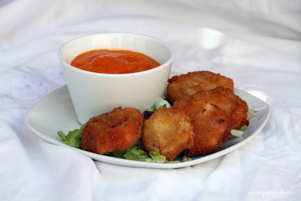 Servimos acompañado de salsa de tomate casera, yo os dejo en este enlace la receta de como lo preparo, se puede añadir guindilla para de un toque picante. Pincha aquí para ver como hago el tomate frito .