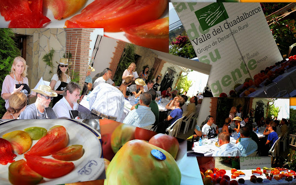 Sabor a Málaga y GDR Valle del Guadalhorce tuvieron el detalle de invitarnos, tanto a mí, como a mis amigas (grupo pipirrana) y hermana María José, blogueras gastronómica, todas con la distinción Sabor a Málaga a las Jornadas Tomate Guadalhorce de los cuáles, el tomate huevo de toro es el rey y, donde asistieron profesionales de la restauración, gastronomía y medios de comunicación (Andalucía Directo) con el objetivo de dar a conocer el cultivo del tomate ecológico en todas sus variedades y propiedades organolépticas que no son pocas y a cuál más sabroso.