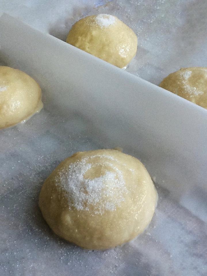 Voleamos cada trozo y los vamos dejando bastante separados entre sí sobre la bandeja cubierta con papel de hornear y dejamos reposar un par de horas (Mejor dentro del horno apagado para que no se reseque la masa)