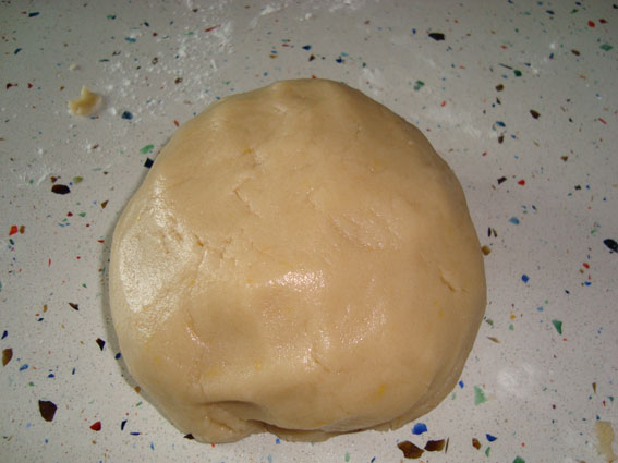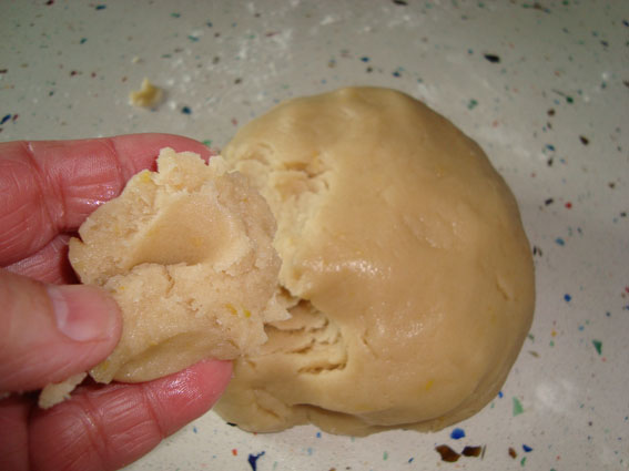 Poner la masa en la encimera con un poco de harina y amasar con las manos hasta que quede una masa como esta.