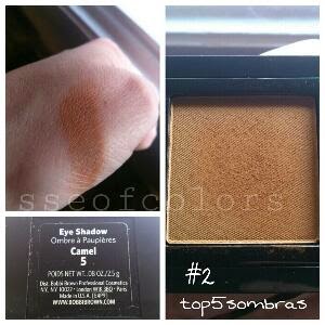 En el #2 un tesorito, la sombra Camel de Bobbi Brown. Un marrón-naranja medio precioso y muy pigmentado. Estaba loca por conseguirla y apenas la relanzaron, fui a por ella!. La textura de las sombras de esta marca es genial, suave y fácil de difuminar.