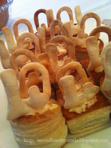 Uno de los aperitivos que pusimos y que iban a estar ya en las mesas a la llegada fueron unos volovanes rellenos de ensaladilla de gambas. Y no sabíamos cómo darles un toque "40".