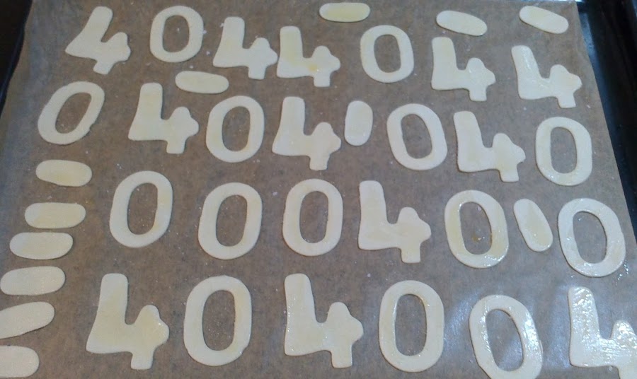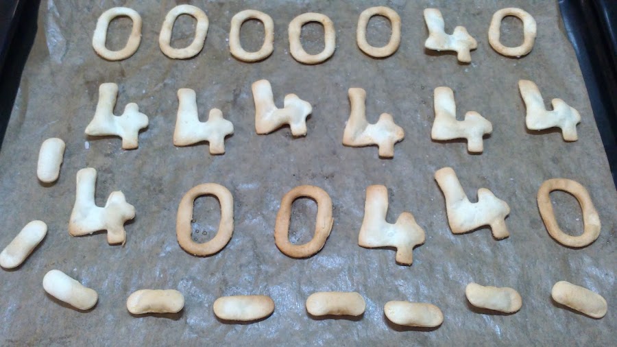 Con los cortadores de galletas que utilicé para las galletas, cortamos unos cuantos "4" y otros tantos "0".