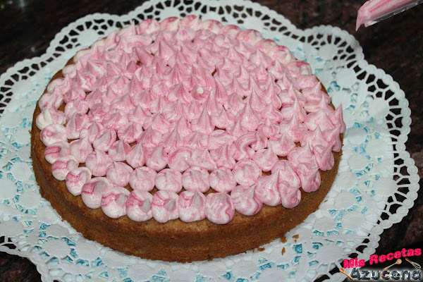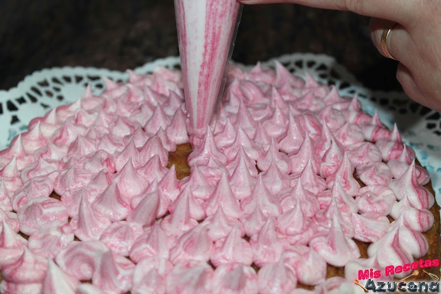 A la hora de adornarla cogeremos una manga pastelera, no le pondremos boquilla, le cortaremos el pico a la manga para hacer picos tal y como se ve en la foto.