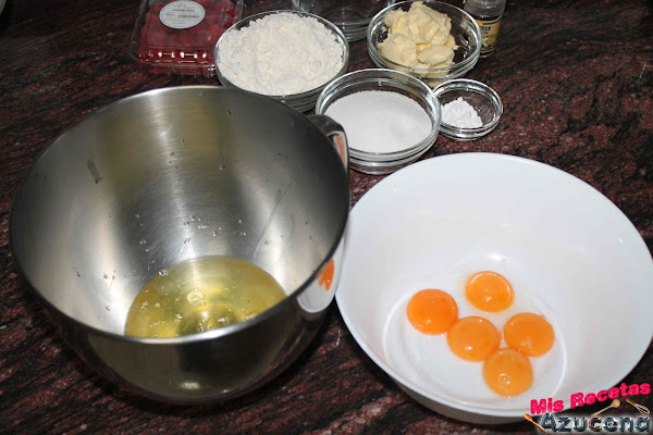 En un bol cascaremos los huevos y separaremos las yemas de las claras, las claras con ayuda de unas varillas las levantaremos a punto de nieve.