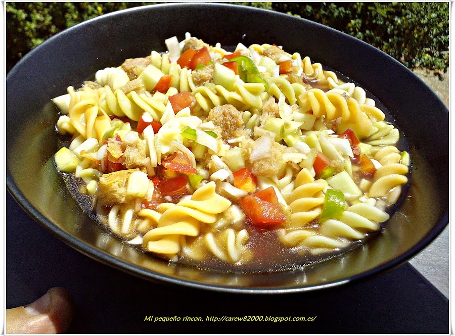 Presentamos como más nos guste y servimos dos rebanadas de pan tostado en cada plato, espero que os guste porque para estos calores es una maravilla.
