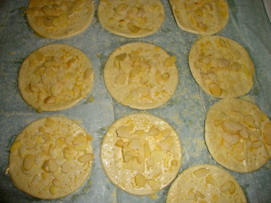 La parte del hojaldre que va a usarse de tapa se le pone almendra molida y laminada.