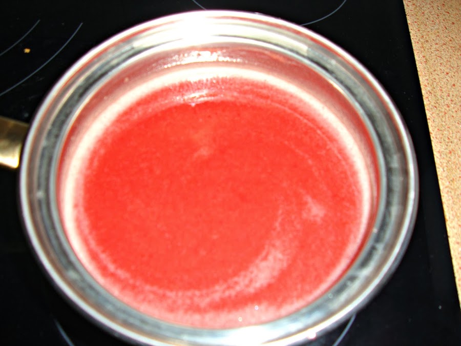 Para acompañarlo hice un coulis de fresa, como ahora no es temporada compre fresas en almíbar y triture las fresas con un poco de su almíbar y las puse en un cazo con azúcar y vino de Oporto hasta que redujo un poco, aquí cada uno puede reducirlo hasta la consistencia que desee.