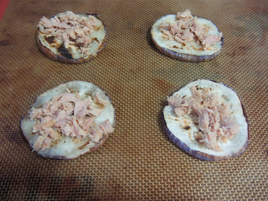 Esta receta está sacada de esta página, aunque, como es normal en mí, lleva "tuneos". Las berenjenas las pongo en sal para quitar el amargor, las hago a la plancha (y no fritas) para quitar calorías (¡qué cruz, Señor!), y no he utilizado alcaparras con el atún por la sencilla razón de que no las soporto (así que ya sabéis: quienes seáis amantes de las alcaparras, mezcladlas con el atún).