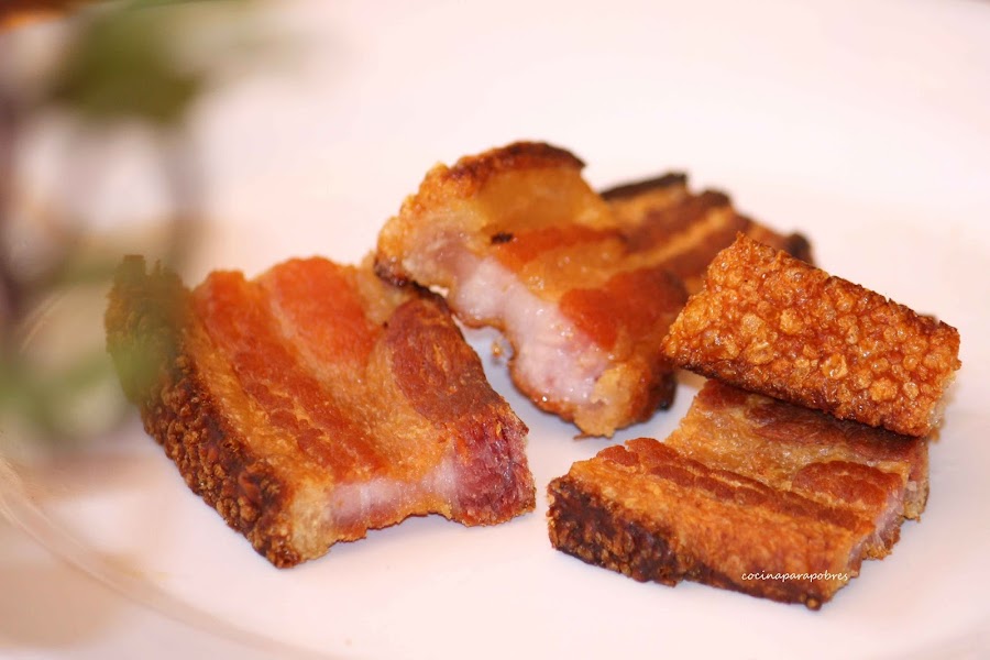 Esta rica panceta me llega de mano de la empresa Embutidos Caba, adobada con pimentón y sal, curada en secadero tradicionales, pieza perfecta para elaborar Torrezno de Soria aunque también podemos emplearla para otras elaboraciones como :cocidos, pucheros, barbacoas, planchas y un sin fin de posibilidades. Yo en esta entrada os voy a contar cómo preparar torrezno en casa, pero antes os invito a pasar por mi grupo de facebook : https://www.facebook.com/cocinaparapobres/