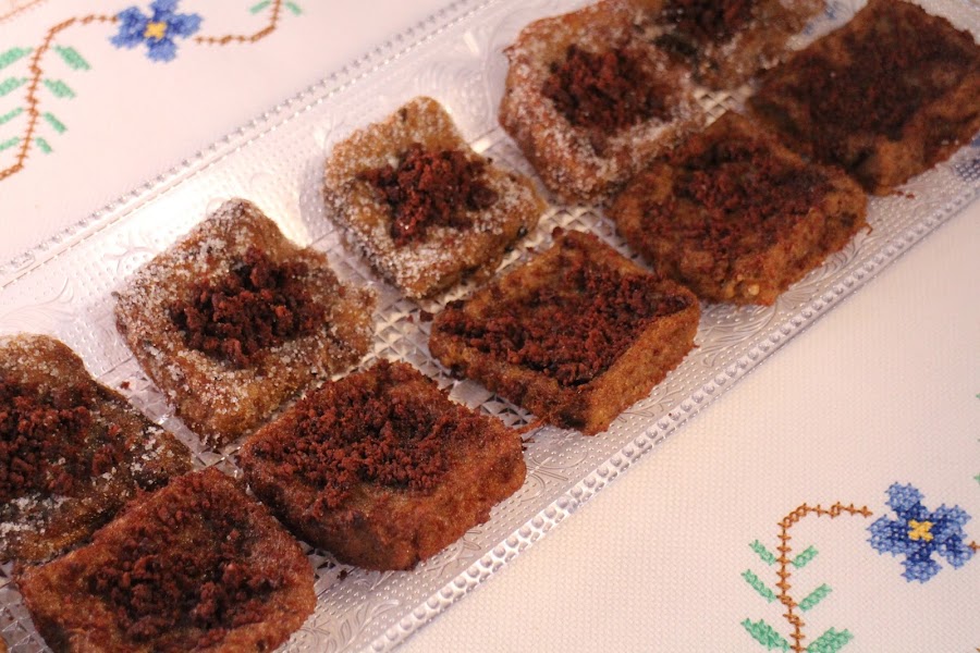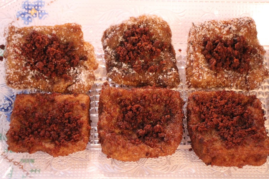Vamos mojando cada trocito de pan de molde en la bebida de café e inmediatamente pasándolo por huevo y friéndolo en la sartén hasta que esté doradito (no tarda nada). Vamos sacando las rebanadas ya fritas y las colocamos en un plato con un papel de cocina para que absorba el exceso de aceite.