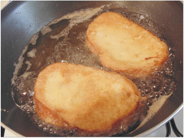 Las freímos hasta que estén perfectamente doradas por ambos lados y eliminamos el exceso de aceite en un papel secante.