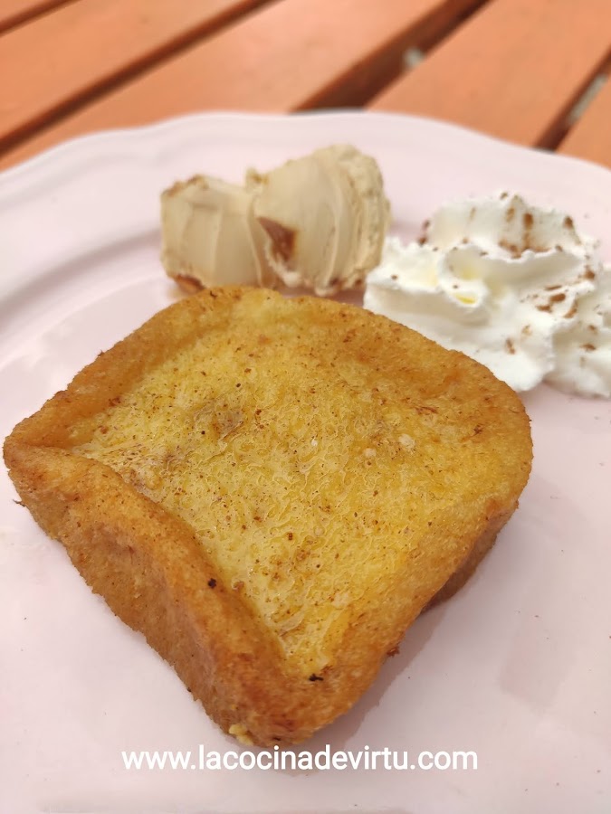 Una vez fritas las torrijas y escurridas del aceite bañamos las torrijas, y déjalas enfriar.