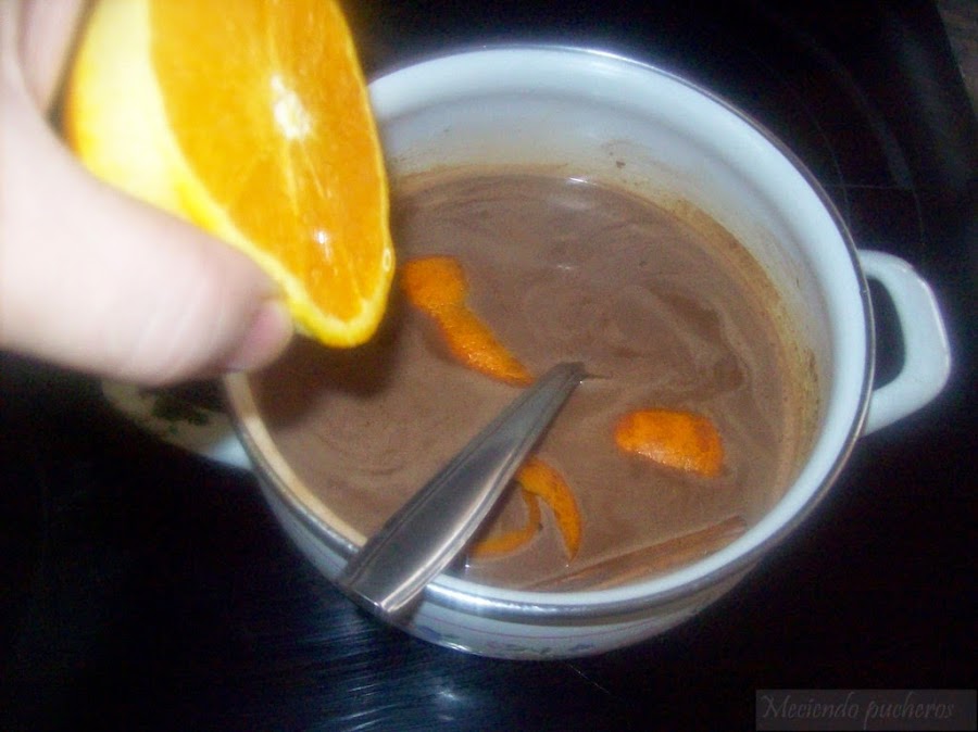 Cuando está caliente, lo reservamos y le estrujamos unas gotas del zumo de naranja, cuya función es la de potenciar el sabor.