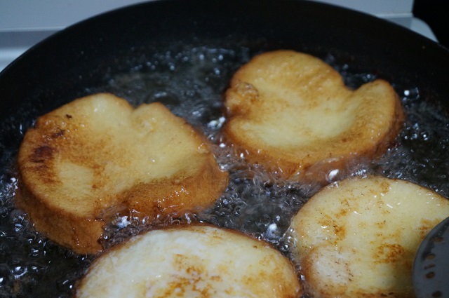 Y cuando esté caliente el aceite, iremos friendo las torrijas.