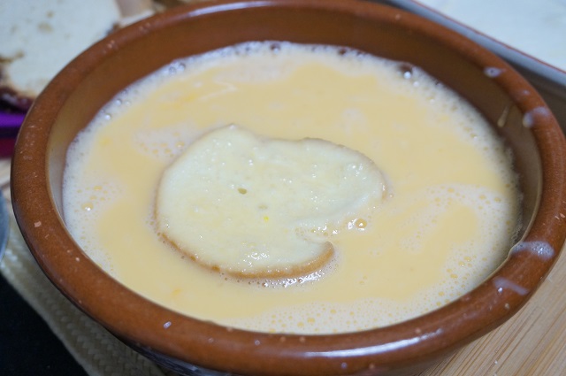 Luego pasamos las rodajas de pan por el huevo.