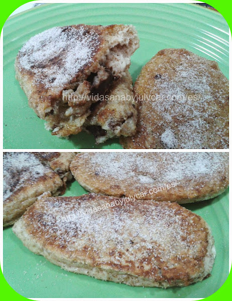 2º U na vez fría la leche ponemos los panecillos para que se empapen bien con la leche, batimos los huevos y pasamos los panecillos por el huevo. pincelar la cubeta de la GME menú horno, cuando este caliente hacemos los panecillos, aplastandolos un poco, por ambas caras, sacar y espolvorear endulzante mezclado con canela