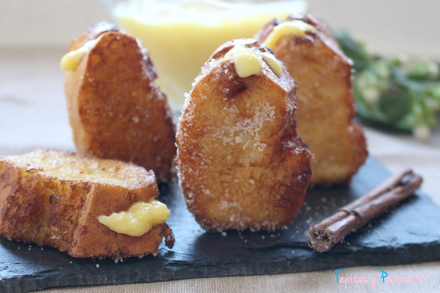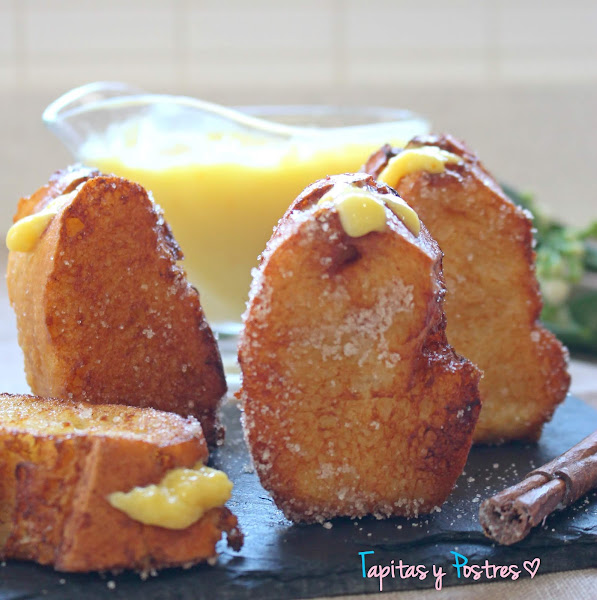 Pero eso no quita para que, de cara al blog, experimente con nuevas versiones. Tengo unas torrijas de leche condensada y también unas ricas torrijas de bizcocho, y hoy os traigo otra deliciosa variedad, torrijas con crema de mandarina.