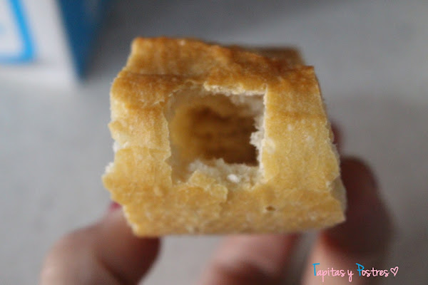 Cortamos las rodajas de pan y les hacemos un hueco en un extremos. Fijaros como me quedaron.