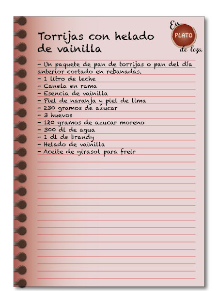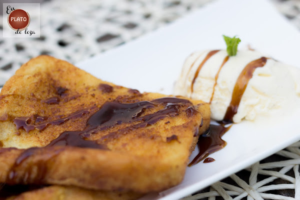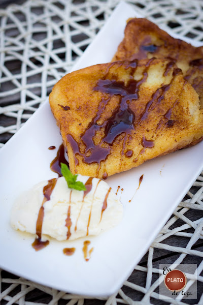 Me puse a investigar y entre mis libros encontré el de "Pesadilla en la cocina" de Chicote que recomiendo 100% por sus exquisitas recetas y las que no haces como tal inspiran para otras. Genial el libro ya digo. En este caso, a sus torrijas con helado no podía ponerles ningún pero. Algo he añadido pero la receta es suya y hay que reconocer el mérito porque ¡que merienda! No dudéis que vale la pena. Luego he visto por las redes que no soy la única que las recomienda así que me animo a enseñar mi versión desde la más absoluta humildad de quien imita a los maestros.