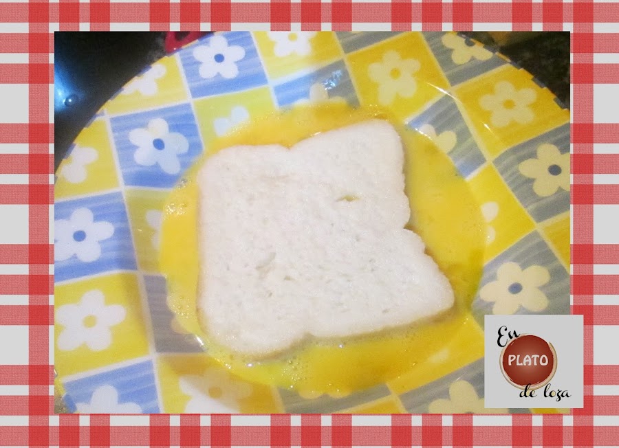 Toca freír las torrijas. Esto es una cadena de producción en serie o a mi me lo parece. Yo preparo dos fuentes una con el preparado de leche, otra con huevo batido y el aceite caliente en el fogón. Pasamos la torrija primero por la leche sin dejar que se desmigue mucho que luego es ingobernable. Un vuelta y vuelta.