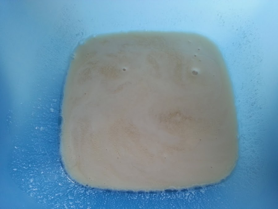 2. - Y en un bol mezclamos la leche con el vino, y meteremos unas rebanadas del pan de torrijas. Dejamos que se empapen bien por los dos lados.