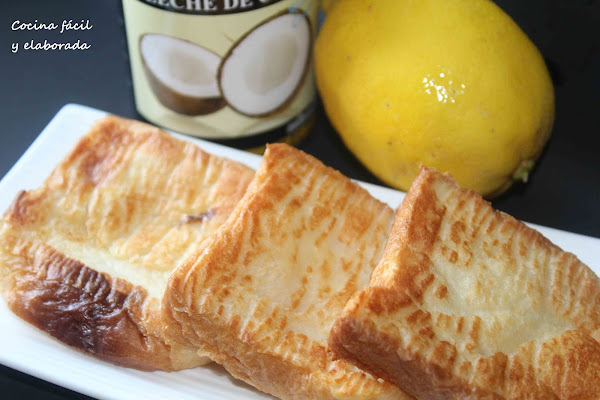 Mi última receta de torrija para este año, esta también al horno, pero con un toque totalmente original y diferente a las clásicas, con leche de coco, le dará un sabor muy especial. Le voy a quitar los rebozados posteriores bien en miel o azucar-canela. Quiero que probéis un sabor nuevo, y seguro que vais a repetir. De esta forma ampliamos el abanico de sabores de las torrijas, el año que viene probaremos nuevas recetas (de natillas, rellenas de crema pastelera, chocolate, etc).