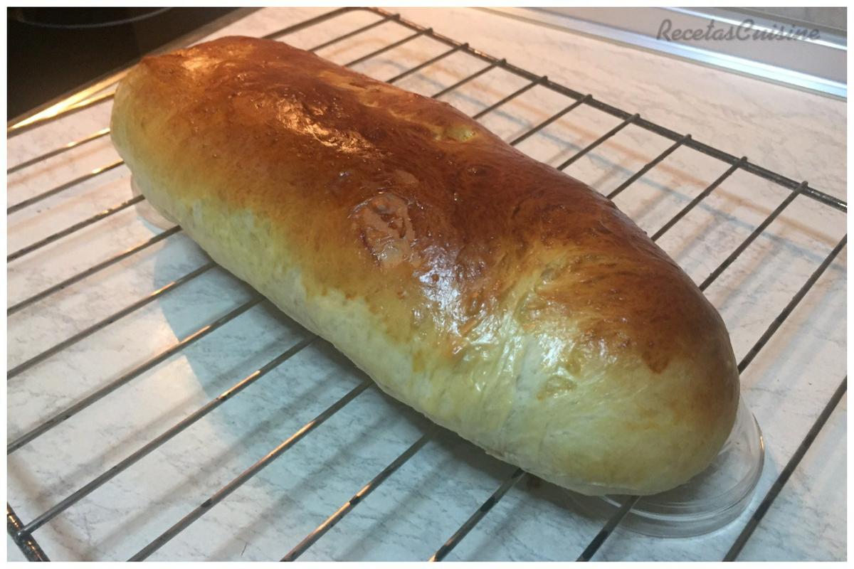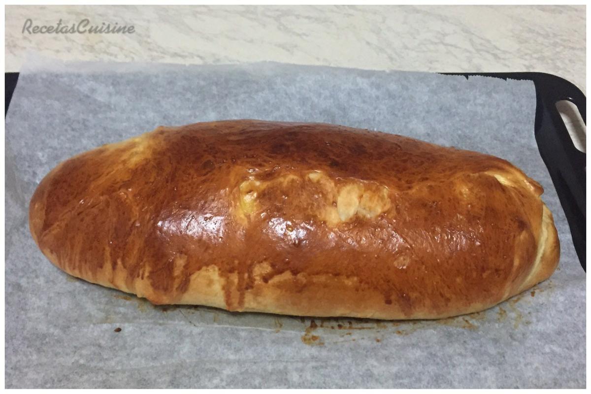 9. Pasado este tiempo, precalentamos el horno a 180º, con calor arriba y abajo. Pintamos el pan con el huevo batido y horneamos. El tiempo de cocción variará en función del grosor proporcionado a la masa del pan, y del tipo de horno, pero será aproximadamente entre 15-20 minutos. Mejor vamos mirando, ponemos 15 minutos, tanteamos, y si hace falta, ponemos otros 5. Si viéramos que nos lo está dorando mucho, y pensamos que es pan no está hecho por dentro, podemos bajr un poco la temperatura, o cubrir el pan con papel de aluminio para que no se nos queme.