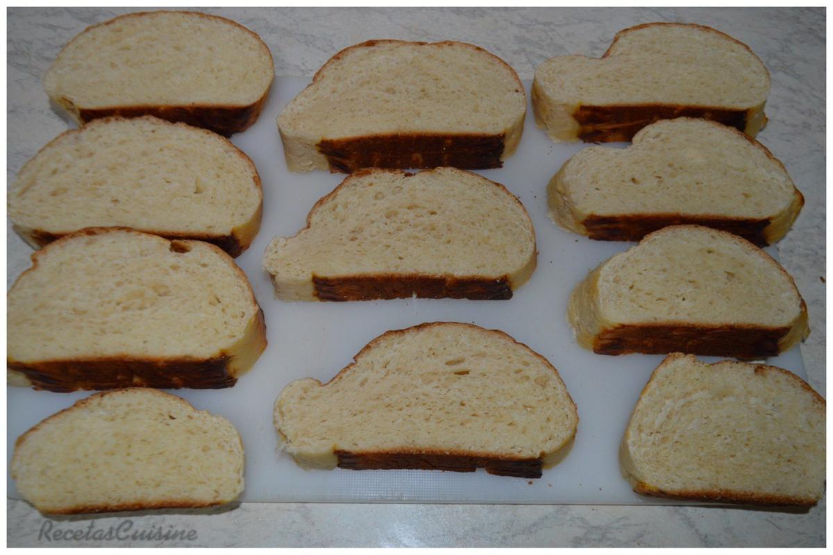 4. Cortamos el pan en rebanadas de algo más de un dedo de grosor, también se pueden hacer más finas; para mi gusto, están más buenas finas. Si ya las habíamos cortado cuando hicímos el pan, pues obviamente, nos saltamos este paso.