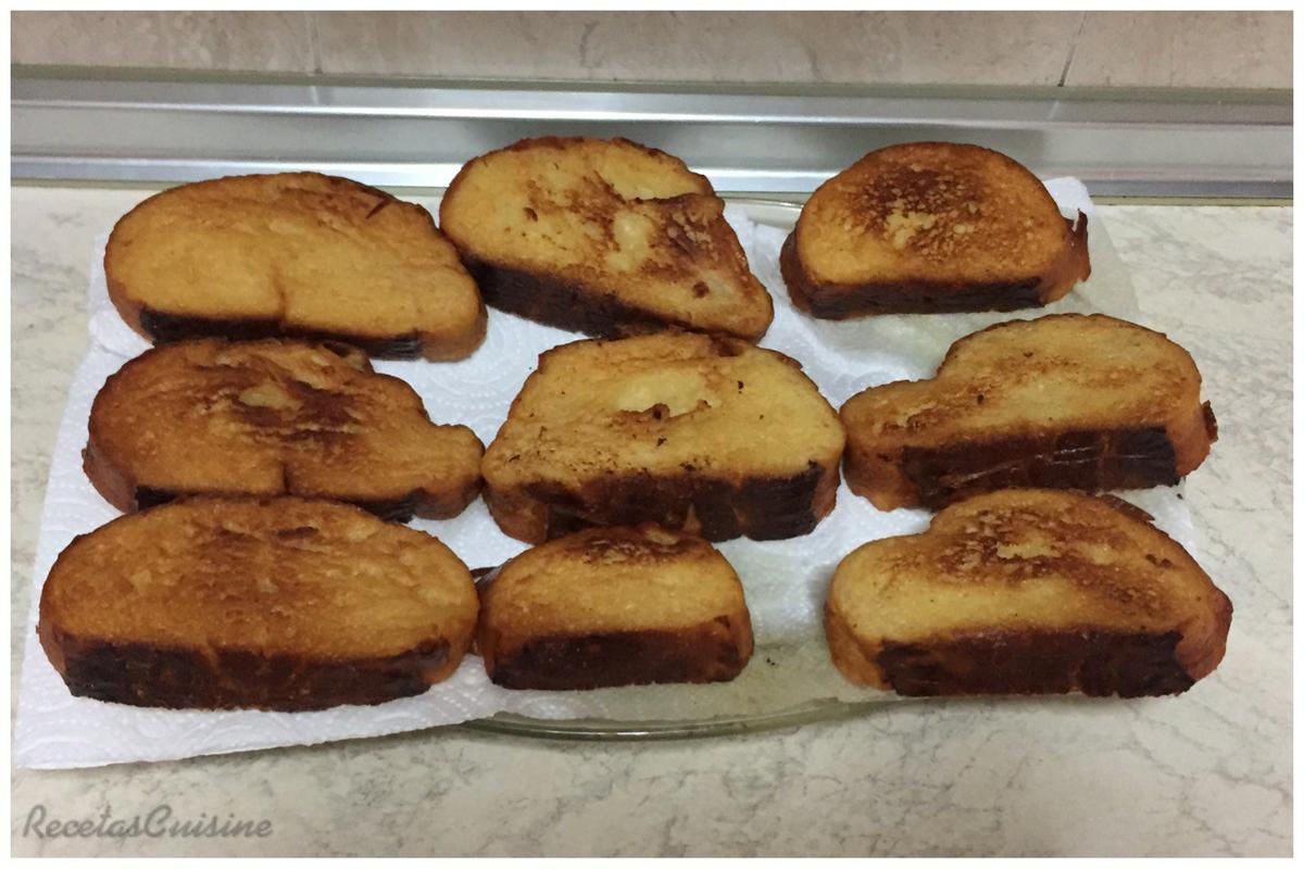 6. Freímos cada torrija, por un lado, y cuando esté, la damos la vuelta para que quede dorada por las dos caras.