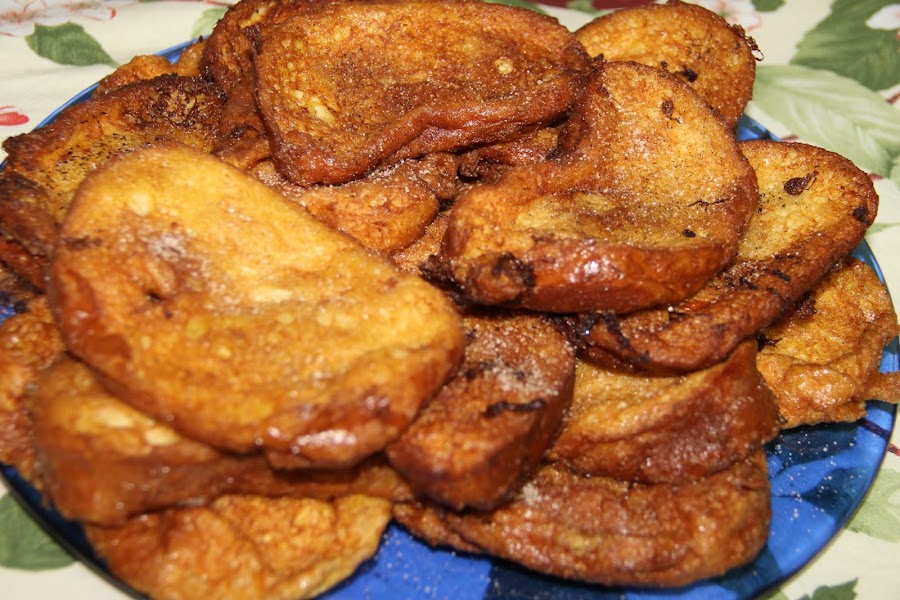 Las pasamos por el huevo y vamos friendo las torrijas con cuidado de que no se toquen entre ellas para que no se peguen, las ponemos un poco en papel absorbente para quitarles el exceso de aceite y por últimos las pasamos por la mezcla de azucar y canela y listas para degustar.