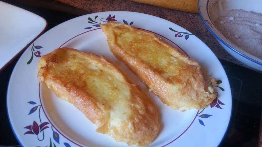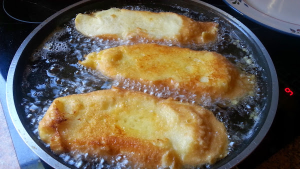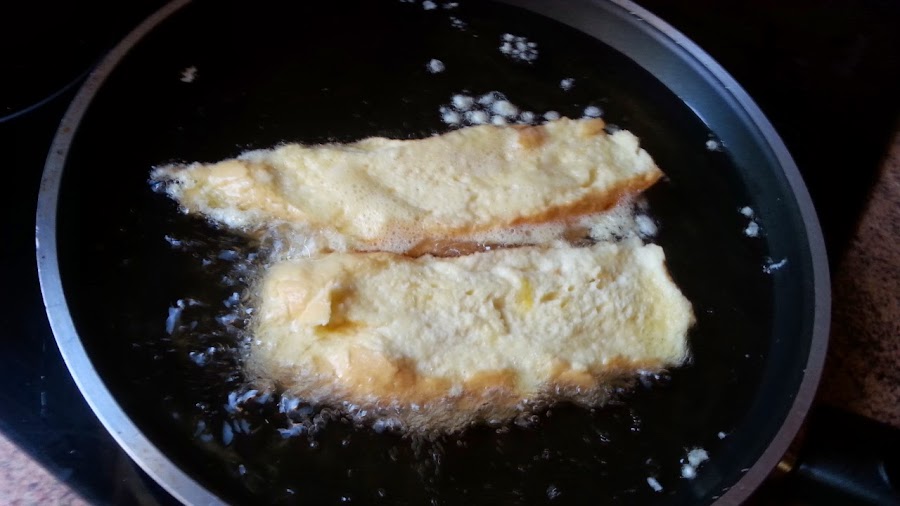 y en una sarten echamos aceite de girasol en abundancia, se puede echar de oliva, pero el sabor es mas fuerte luego el de la torrija