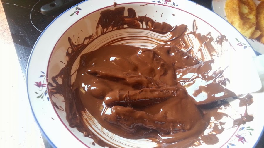 y las vamos colocando en platos para que enfrie el chocolate y solidifique
