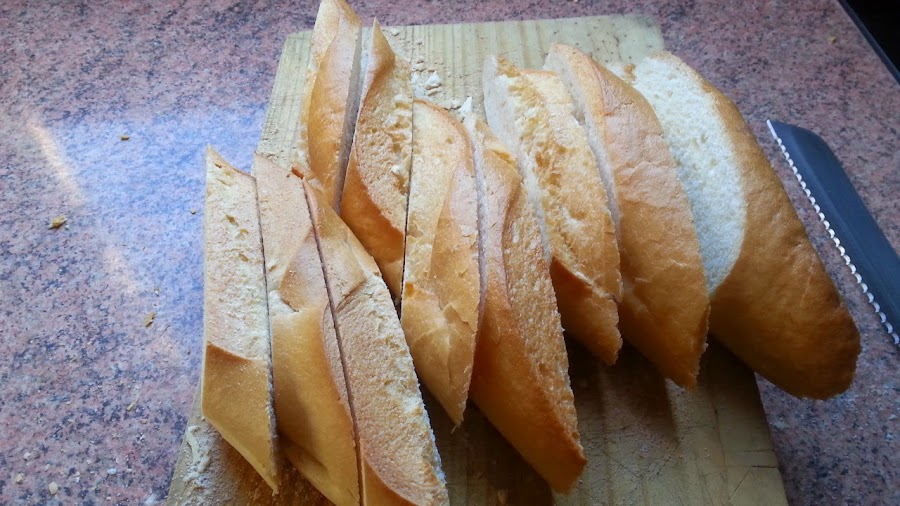 esta receta es para una barra de pan, cortadas en oblicuo me han salido unas 10