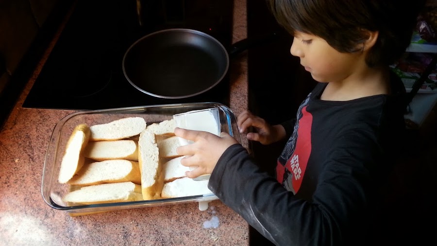 paciencia, es el secreto de esta receta. la leche se echa de poco en poco empapando bien cada rebanada