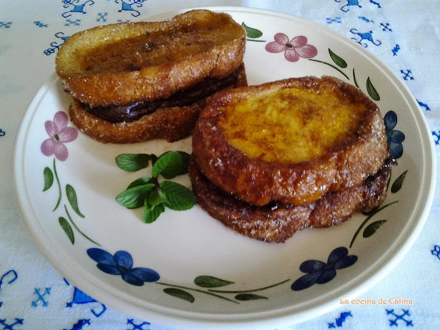 tapamos con otra rebanada y las pasamos por una mezcla de azúcar y canela.